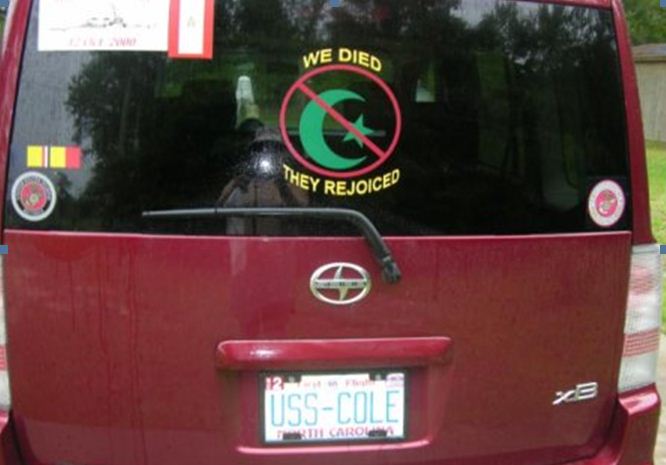 Beginning in 2001, to show his anger toward the Muslim terrorists who killed his son, Nieto displayed various decals on his vehicle expressing anti-terrorist sentiments, such as “Remember the Cole, 12 Oct 2000,” “Islam=Terrorism,” and “We Died, They Rejoiced.” Based on a complaint from a Marine who is married to a Muslim, on July 31, 2008, two military police officers (MPs) issued Nieto a ticket for displaying “offensive material.”