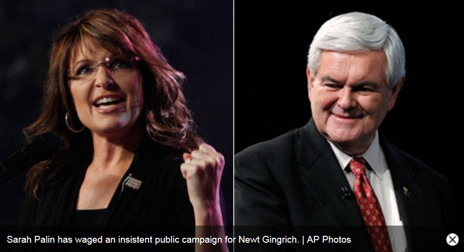 Palin has been active the past week countering false MSM stories about Gingrich as a guest on TV and on her Facebook page. She declares it is crucial to have an extended vetting process. The leftist internet “news site,” POLITICO, running this graphic, dubbed Sarah Palin, “Newt Gingrich’s secret weapon.”