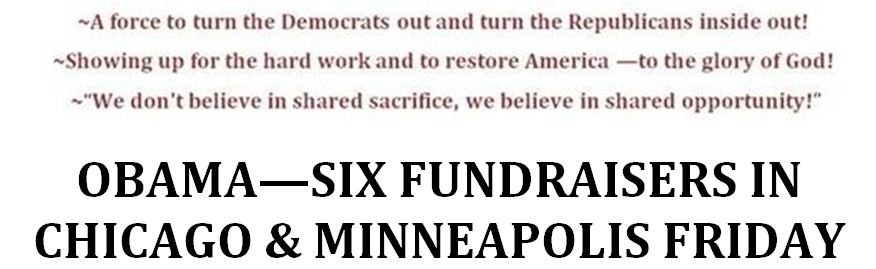 Golly, four days before the recall election of Governor Walker, Lt. Governor Kleefisch and four Republican State Senators, President Obama flew right over Wisconsin and didn’t stop to support the Democrat challengers. We all know the energy and momentum is with the Republicans and their successful reforms. The Democrats and the union thugs need help but where was Obama? Did he have their backs? Heck no! He was 40,000 feet above them on the way to pick up some fat checks from Garrison Kiellor’s rich friends in Lake Wobegon. Obama clearly knows what we may not; Walker & company are in good shape in Wisconsin now and he (Obama) is on the way to a loss in Wisconsin in November.