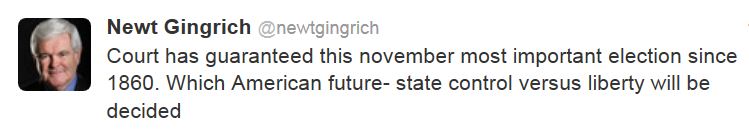 @NewtGingrich: Court has guaranteed this November most important election since 1860.