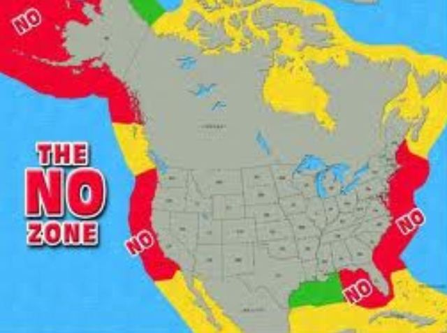 This is world map of petroleum “No Drilling Zones.” As this map shows, these zones are only in US waters. These restrictions are placed on America by a single world power—us. This is insane.