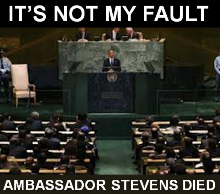 25 days before the Presidential election, it is fair to sum up the position of the White House as, “It is not my fault.” It would be misleading characterize it as, “Not our fault.” As the Benghazi scandal explodes, it is clear the White House is throwing other players—Mrs. Clinton, for example—under the bus. It is very instructive to take a look back at how we got to, “It’s not my fault.”